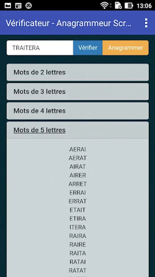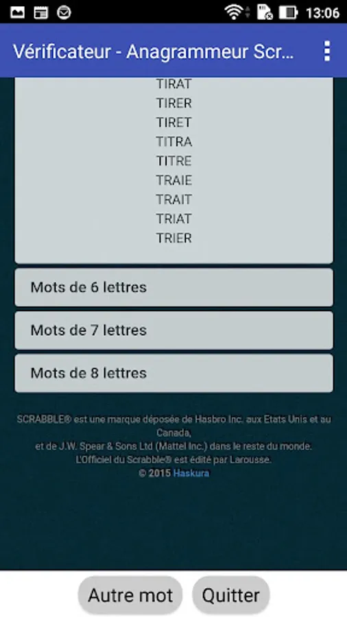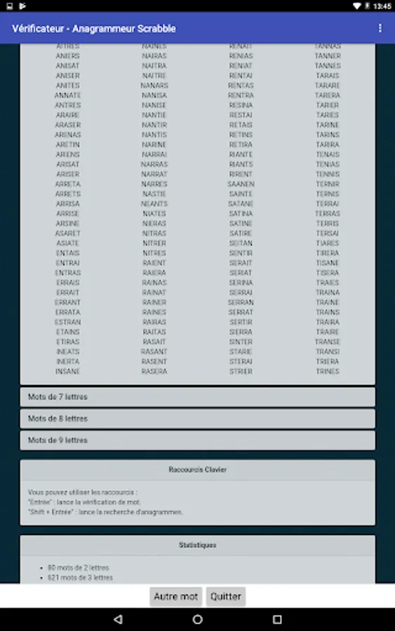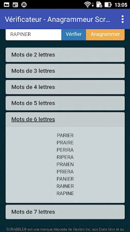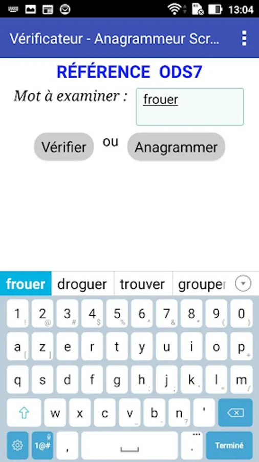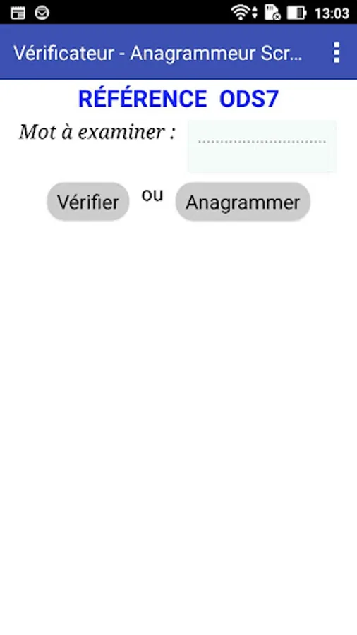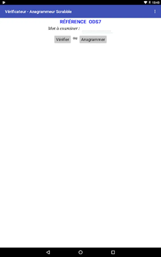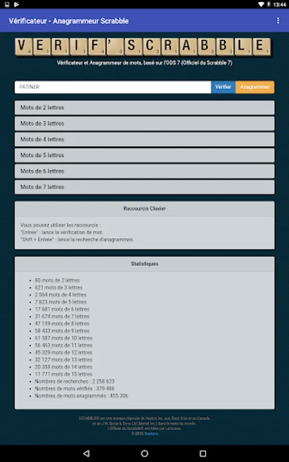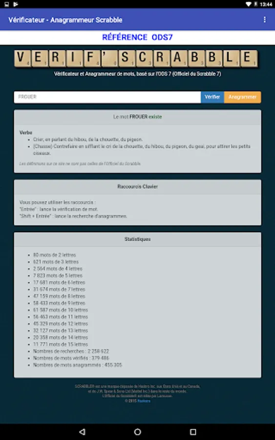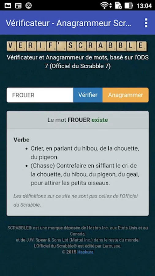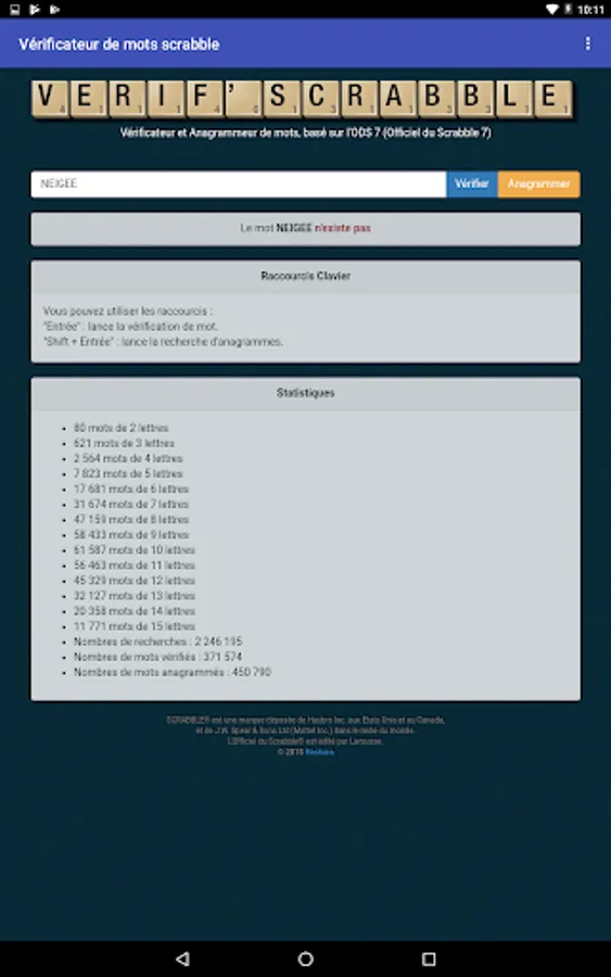 The app allows to check if a given word is valid or not for scrabble, according to the last official dictionary of this game.
