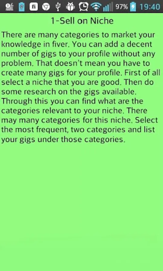 Fiverr is a marketplace allows anyone to buy sell services. Few among many sellers are on fiverr are success as sellers. This app describes few tips and tricks that can follow by any seller on Fiverr.
