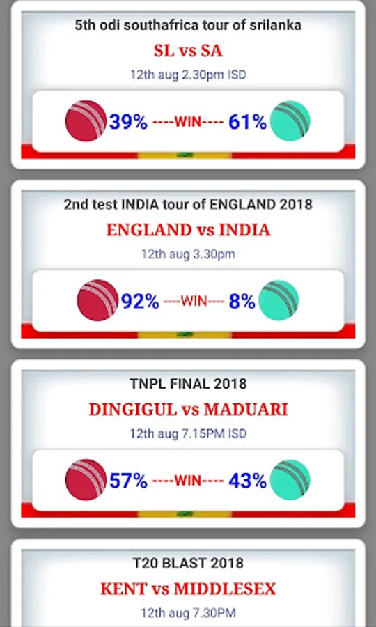 this app was live cricket scoring app where you can find the ball by ball prediction of recent and upcoming matches.