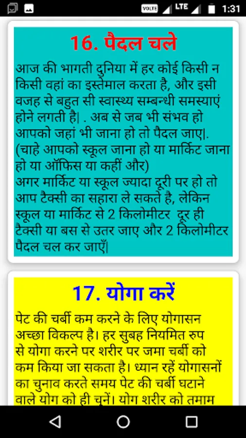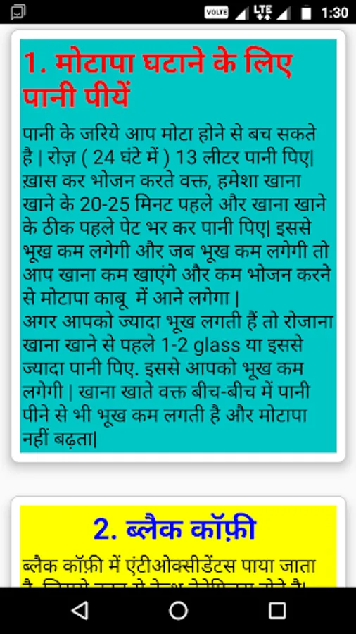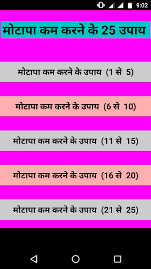 Motapa kam krne ke 25 upay app has contents that follow the categories: