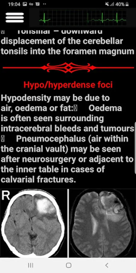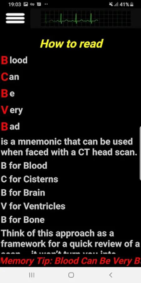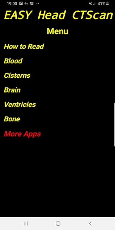 In this app, I covered the most important Head CT-Scan features that a practitioner face in his clinic or in an ER. Subjects like Hoe to read in an organize way, Blood, cisterns, Brain, Ventricles and bone.