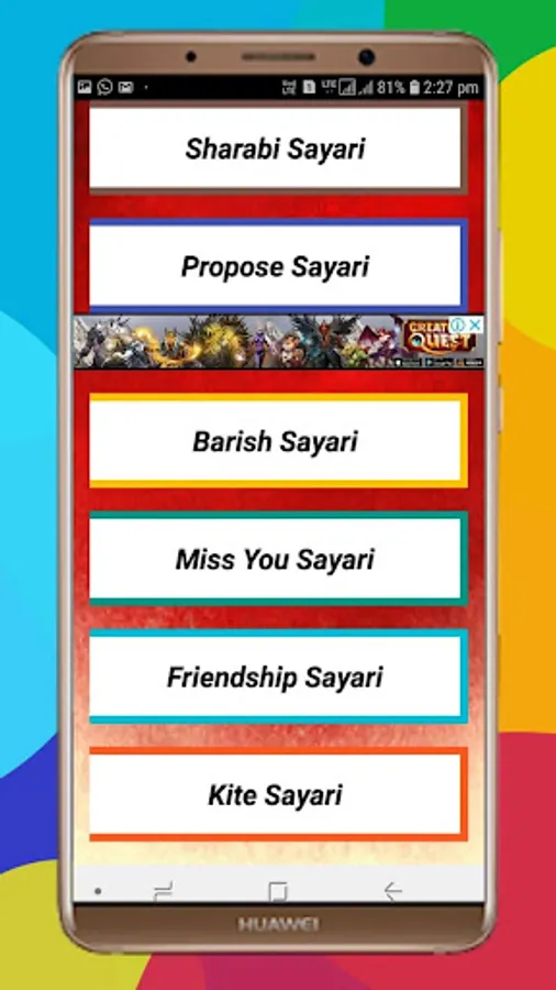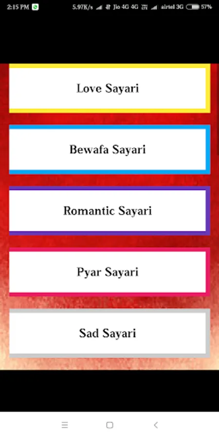 All types of Hindi and English shayari. You can also share shayari (100000+) it's Nice App