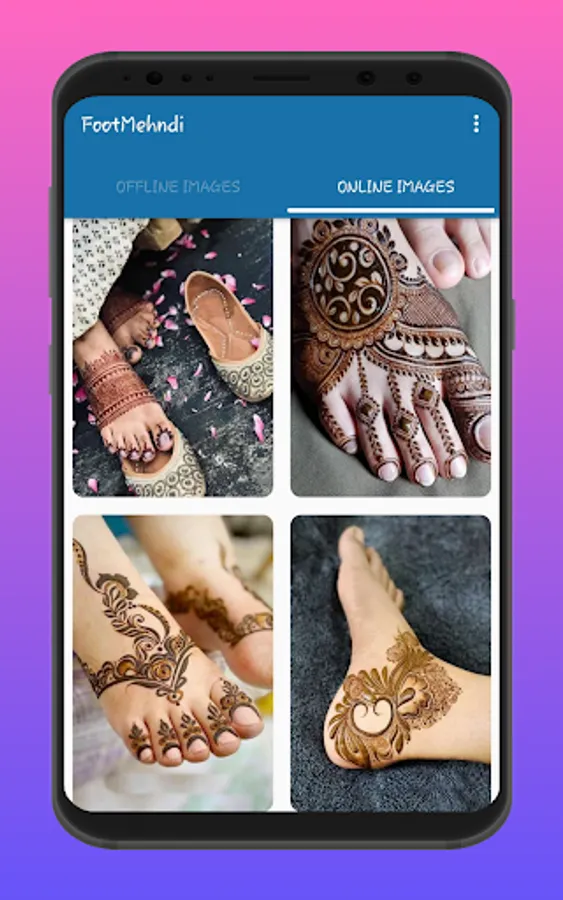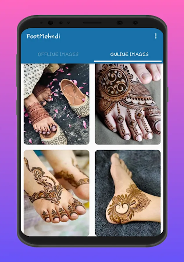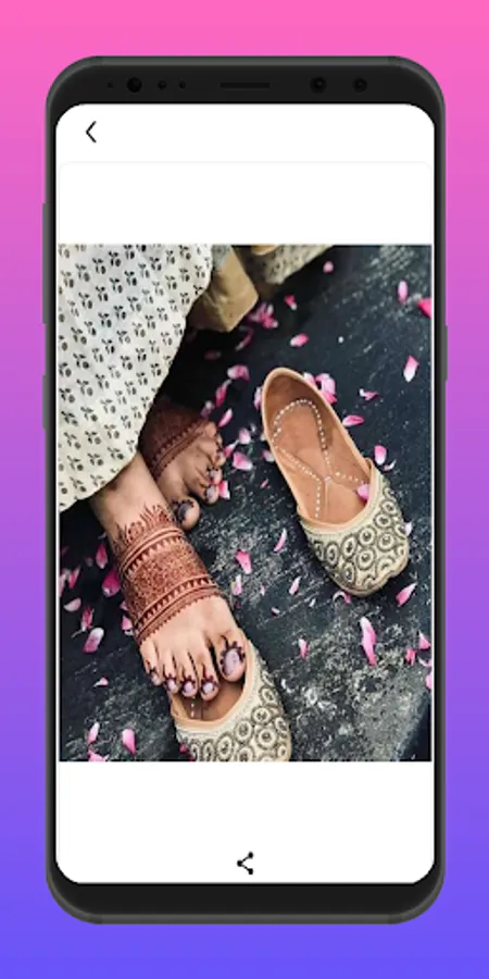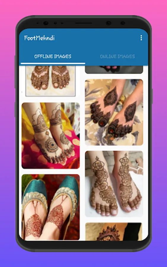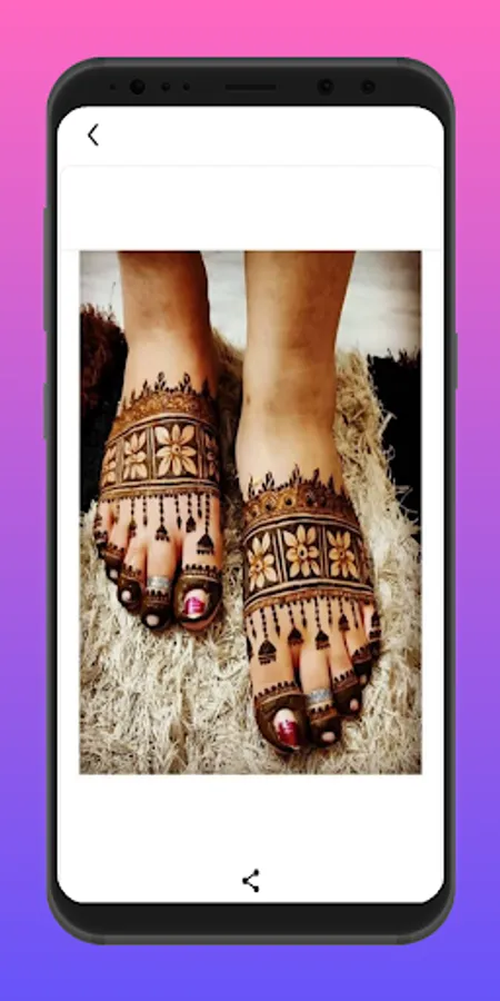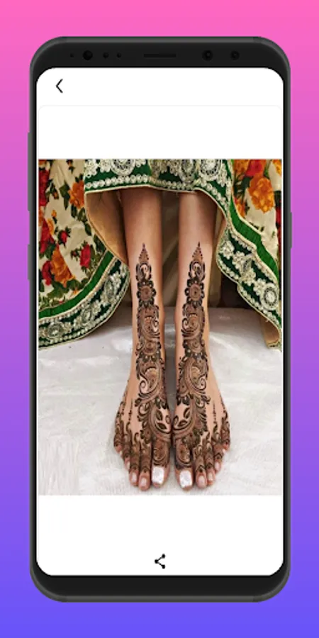 The app contains "foot/feet Mehndi Designs' that include a very nice collection of foot Mehndis.