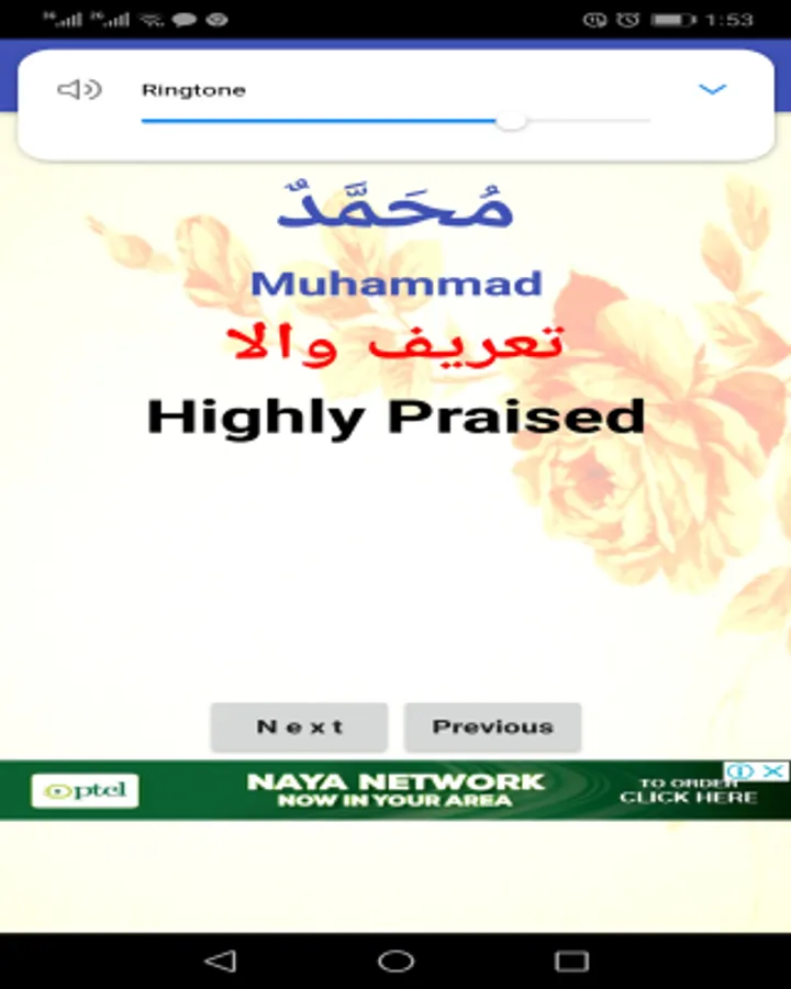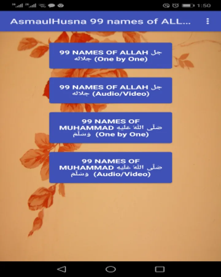 This app contains ASMA UL HUSNA i.e. 99 names of ALLAH and MUHAMMAD SAW with ARABIC text and English / Urdu translations of each name. Apart from this there are also options for recitation of these names with visualization.