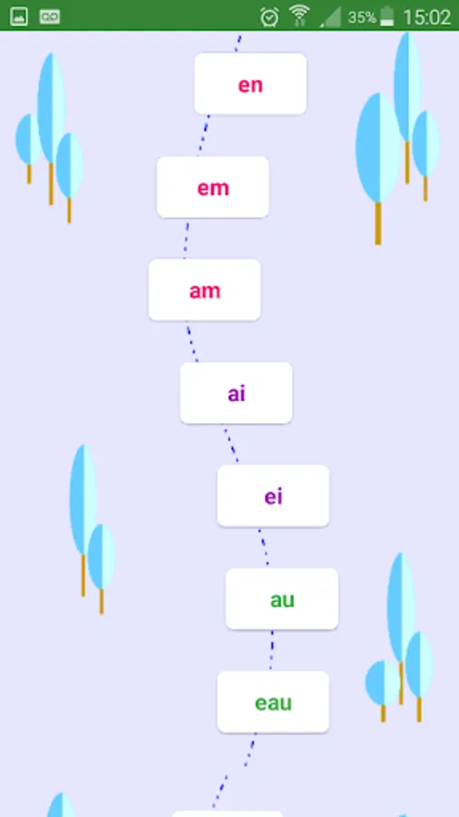 First part: We start by learning a part of the French alphabet in script and out of order. We learn the pronunciation of the letter and not the name of the letter. A quiz for each course to check that the letters are learned and that the alphabet is memorized.