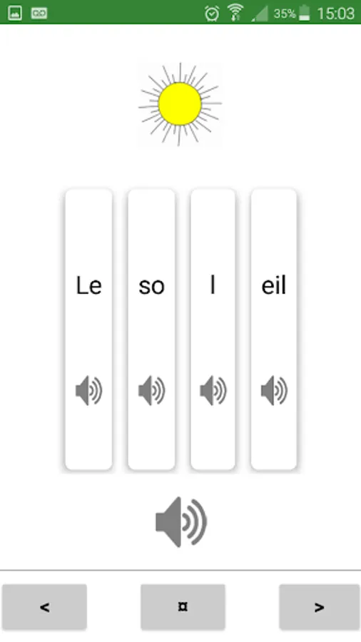 Each syllable can be listened to using an audio button. Then the whole word can also be heard. An illustration of the word then appears. The audios are clear and spoken softly to hear each sound correctly. Quizzes are regularly offered to work on listening.