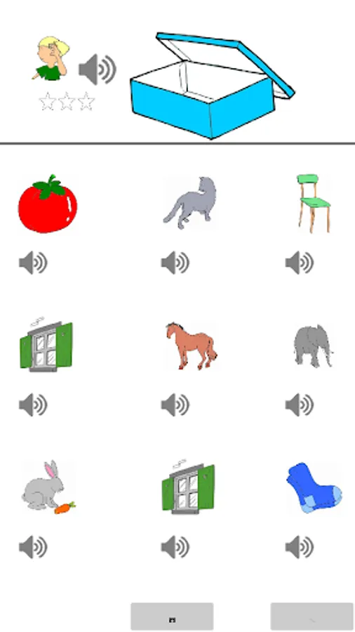 A little game to practice hearing sounds. We have to find the words that start with one sound or another and move them to a box.