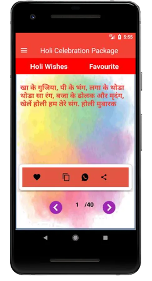 Happy Holi Wishes,Greetings app has the following categories of contents: HappyHoli Photo, Happy Holi Wishes, Happy Holi Frames, Happy Holi Gift, Happy Holi Gift List, Happy Holi Special Photos,Happy Holi wishes in Hindi and English, Happy Holi SMS,Happy Holi wishes, Happy Holi Greetings, Holi Photo Frames, Holi 2018, Holi Colors,Happy holi greeting