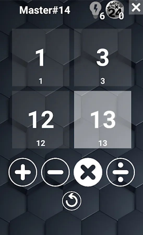 Mathematical sum of all 4 numbers. The result is equal to 24.