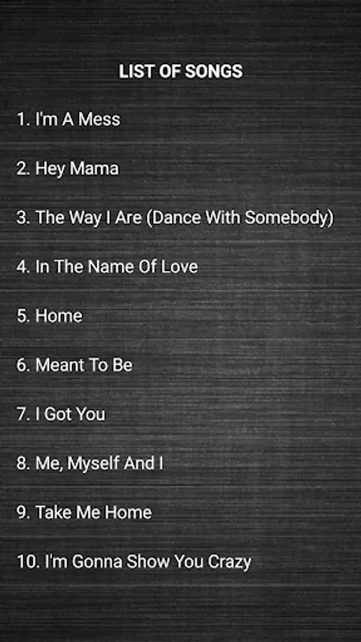 App songs & lyrics list;