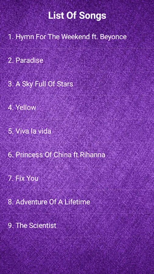 In this application, you could listening Coldplay Best Collections & Lyrics.