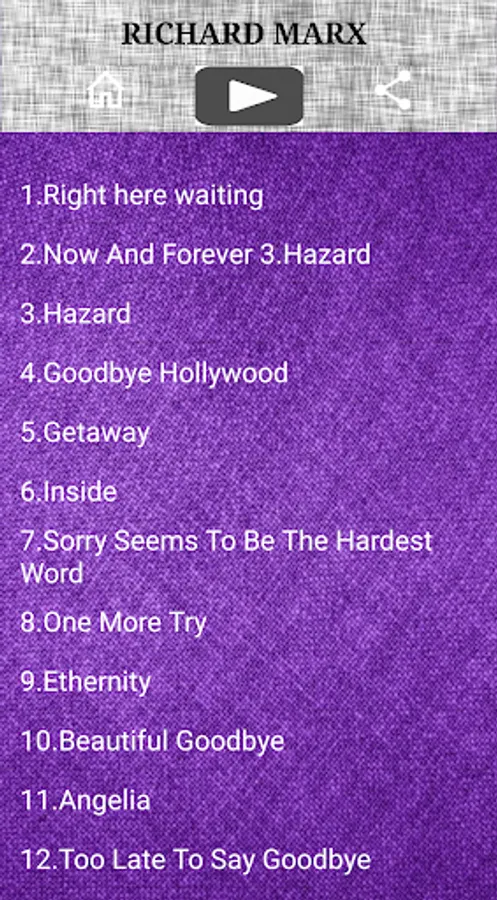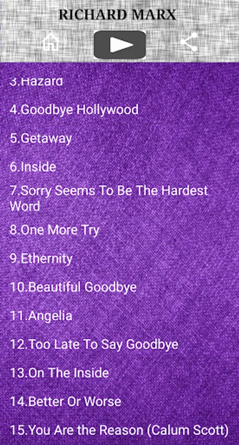In this application, you could listening Ricard Marx Best Collections & Lyrics.