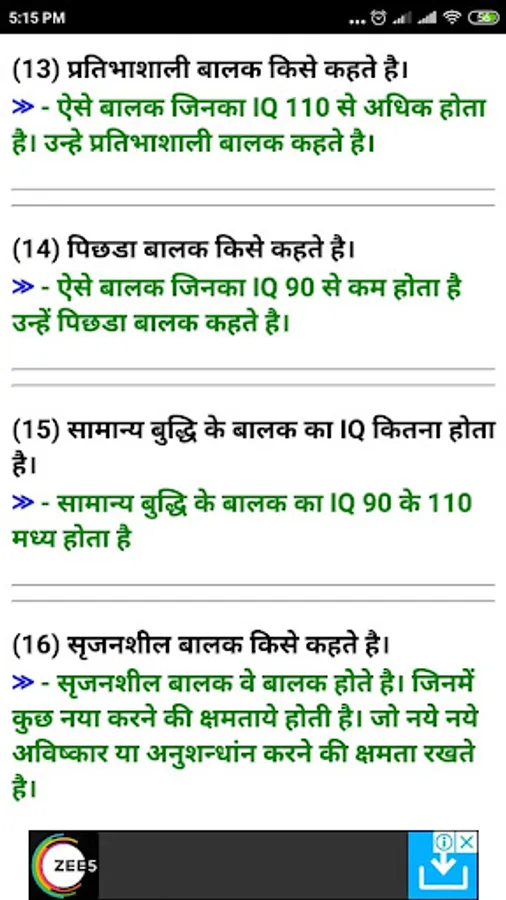 इस एप्प में (बाल विकास) CHILD DEVELOPMENT से संबन्धित बहुविकल्पीय प्रश्नों (MCQ) एवं QUESTIONS AND ANSWERS का संकलन दिया गया है। इनमें से बहुत से प्रश्न विभिन्न प्रतियोगी परीक्षाओं (जैसे: MP TET ( संविदा शिक्षक वर्ग - 1 , 2 , 3 )