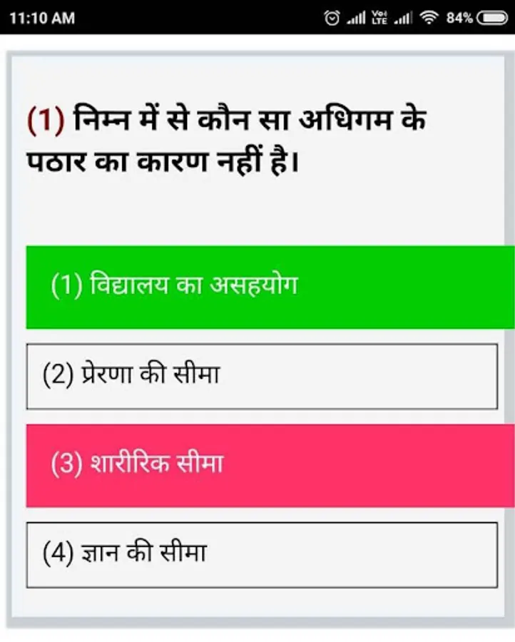 हमें उम्मीद ही नहीं बल्कि पूरा विश्वास है कि यह (बाल विकास) CHILD DEVELOPMENT MCQ (हिन्दी में) एप्प आपको पसन्द आयेगा और इसका अभ्यास आपको सफलता की ओर ले जाने में आपकी मदद करेगा।