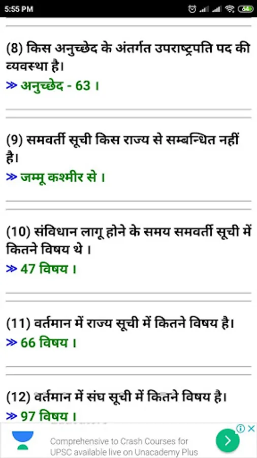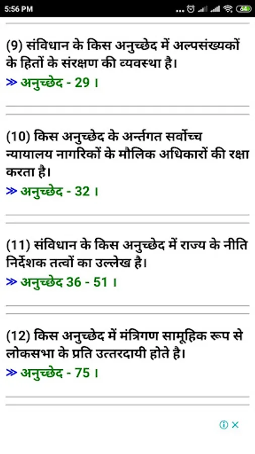 इस एप्प में INDIAN CONSTITUTION से संबन्धित बहुविकल्पीय प्रश्नों (MCQ) एवं QUESTIONS AND ANSWERS का संकलन दिया गया है। इनमें से बहुत से प्रश्न विभिन्न प्रतियोगी परीक्षाओं में बार-2 पूँछे जा चुके हैं।