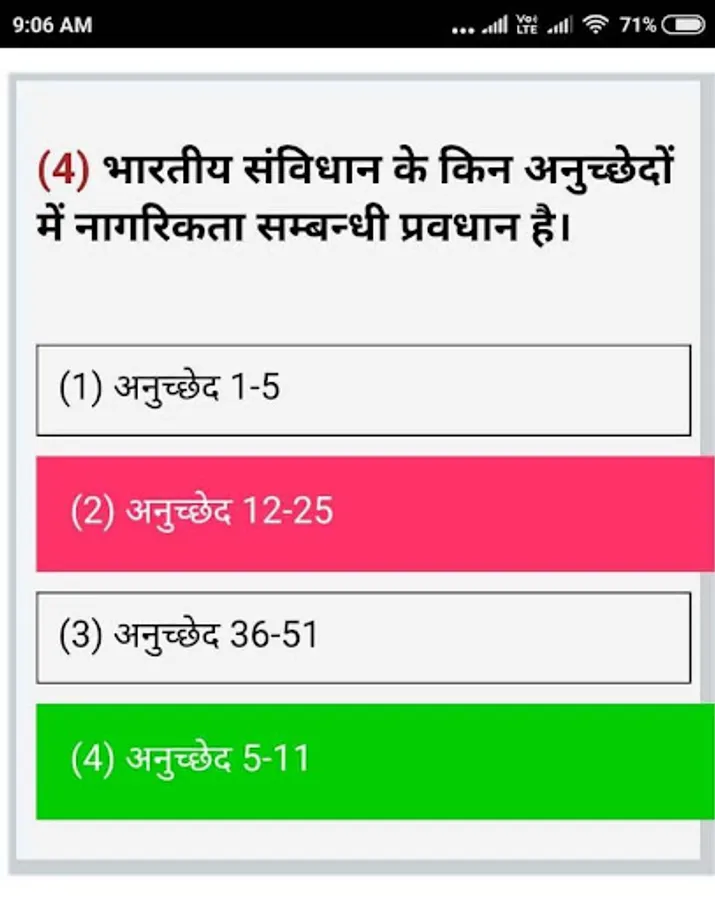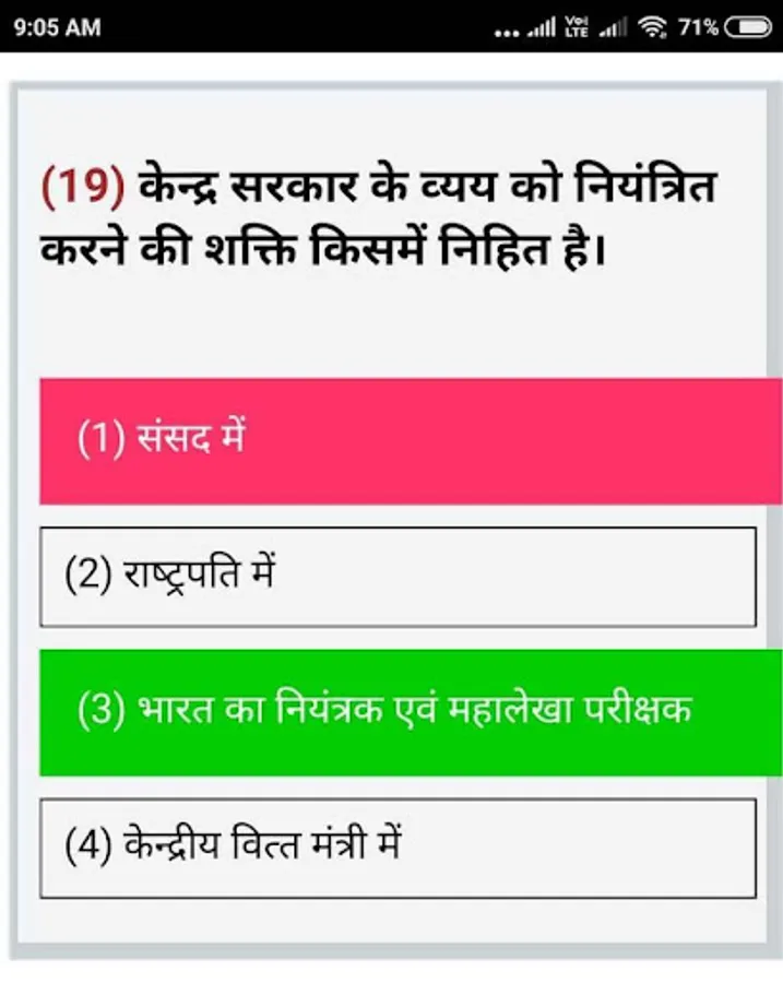 प्रतियोगी परीक्षाओं में सफलता के लिए theory/concepts की असली समझ तभी मजबूत होती है जबकि आप MCQ का अभ्यास करते हैं। INDIAN CONSTITUTION MCQ का अभ्यास करने से आपकी छोटी-2 कमियाँ दूर होने लगती हैं और Accuracy बढ्ने लगती है। यह आज-कल के negative marking वाले exams के लिए और भी महत्वपूर्ण हो जाता है।