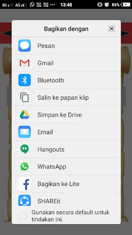 If you find the word you are looking for and want to share it with friends, you can do it by pressing the word you want to share, then you will be left with the option to share via sms, social media or email. So you can easily share words and translations in either Indonesian or Toba.