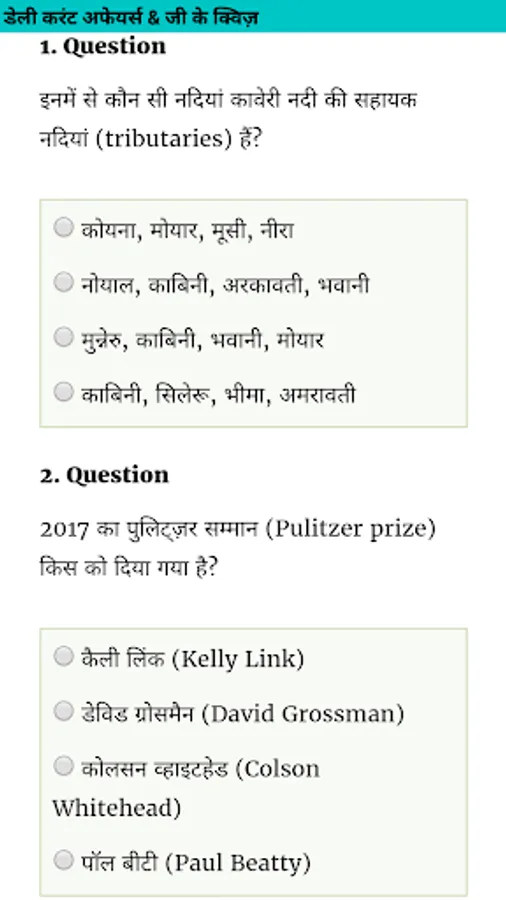 इस एप के माध्यम से प्रतियोगी परीक्षाओं में पूछे जाने वाले जी के और करंट अफेयर्स के प्रश्नों का अभ्यास किया जा सकता है। यहाँ एक क्विज़ रोज़ाना दिया जायेगा जिससे कि अभ्यर्थी करंट अफेयर्स आधारित प्रश्नों के लिए अपडेटिड रहें।