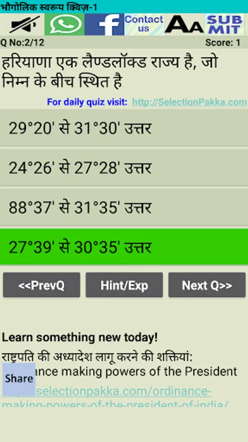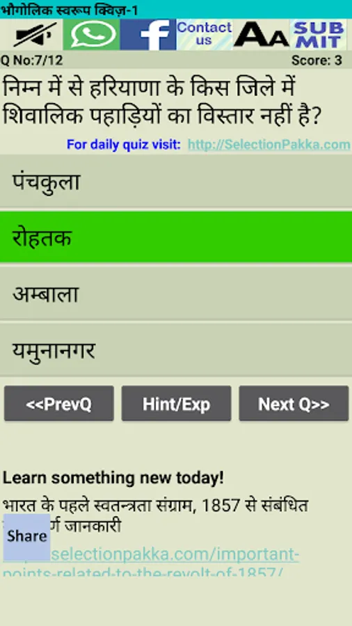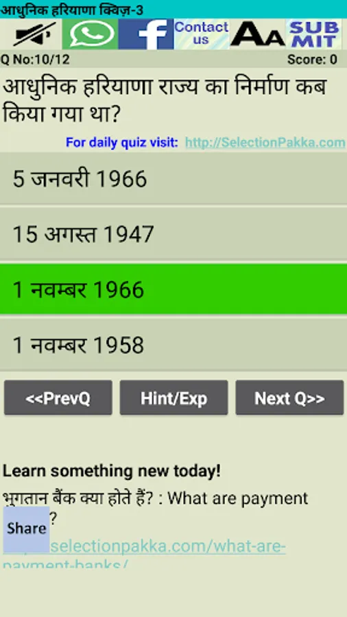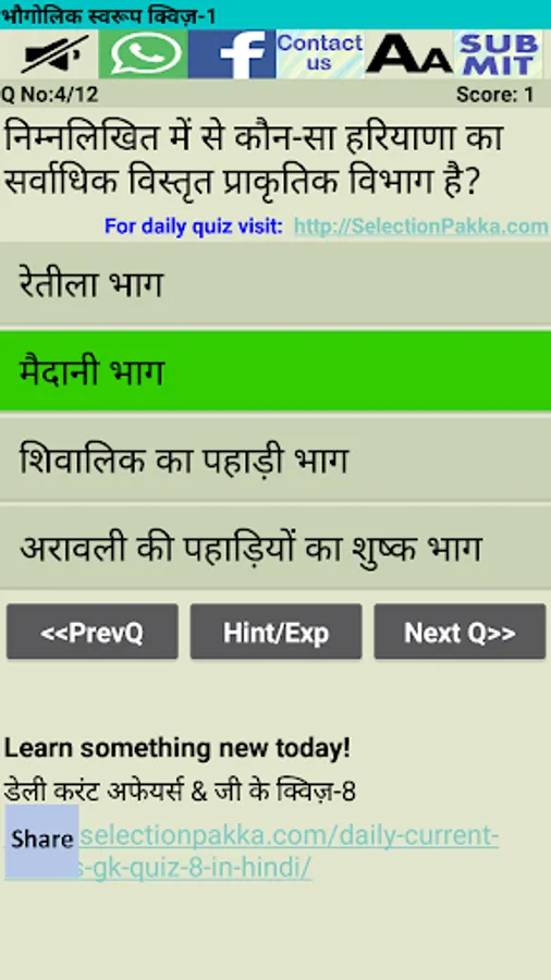 This App contains multiple choice questions of General Knowledge about Haryana.