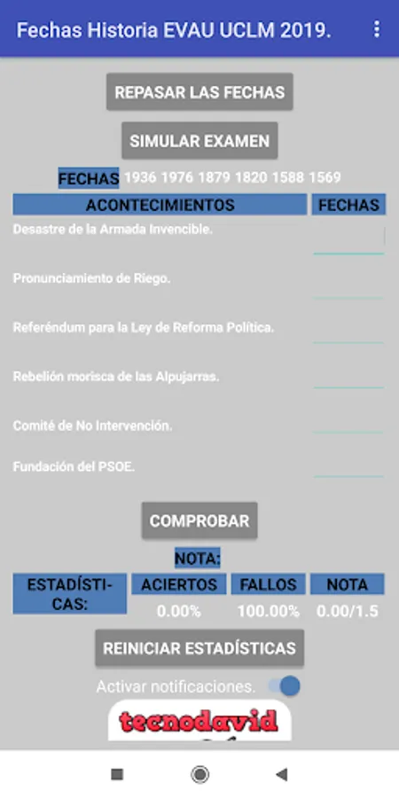 Simulate the exercise of the dates of the EVAU exam of History of Spain, and learn the dates in a simple way.