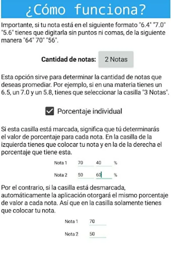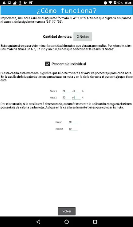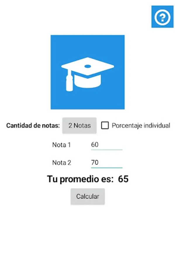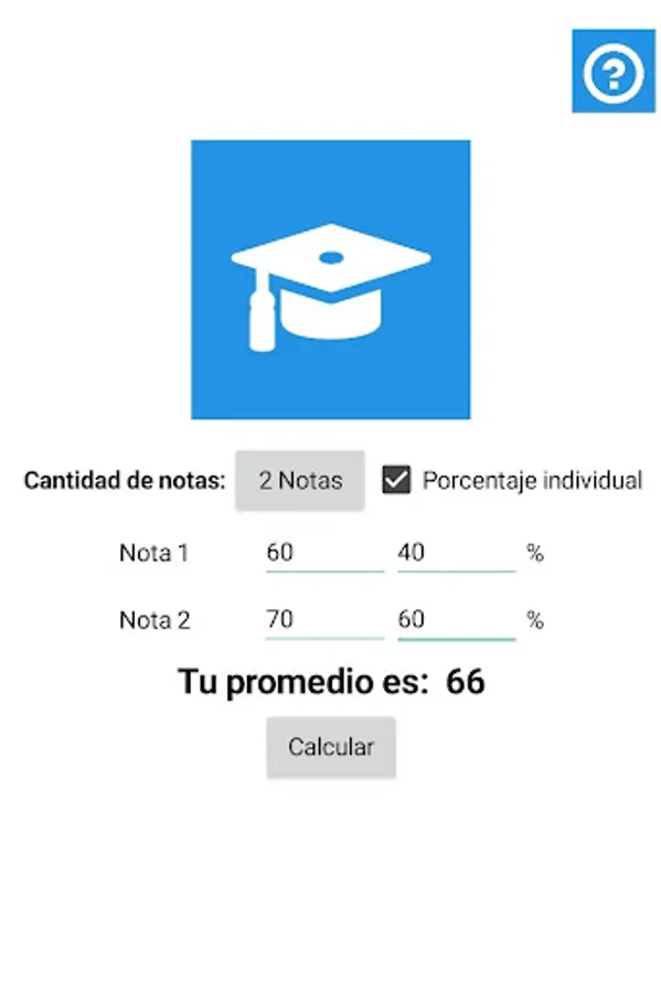 Calculate up to a maximum of 10 grades by assigning a percentage of specific value to each one. You can also calculate simple averages, by having the application automatically adjust the same percentage value to each of the notes.