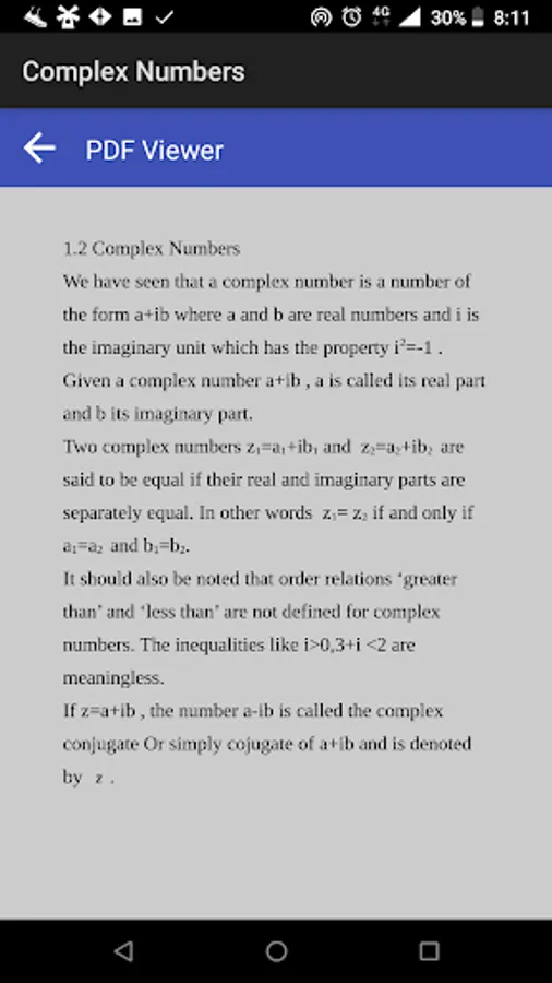 A complex number is a number that can be expressed in the form a + bi, where a and b are real numbers, and i is a solution of the equation x2 = −1. Because no real number satisfies this equation, i is called an imaginary number. For the complex number a + bi, a is called the real part, and b is called the imaginary part. Despite the historical nomenclature "imaginary", complex numbers are regarded in the mathematical sciences as just as "real" as the real numbers, and are fundamental in many aspects of the scientific description of the natural world.