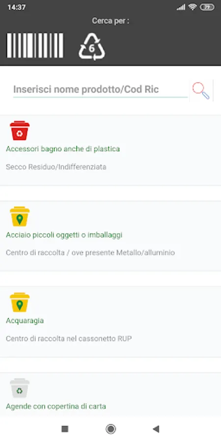 By scanning the product's barcode, or entering the name or recycling code for the waste, you will have detailed information on how to correctly assign it.