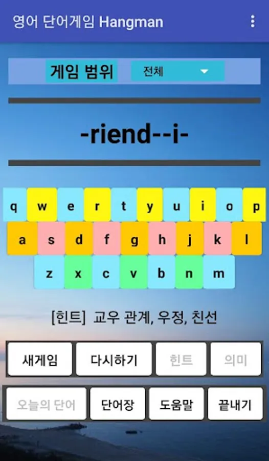 When you want to get bored or relaxed, you can check your vocabulary skills while enjoying Hangman, an English word game, and automatically review vocabularies stored in the vocabulary according to the review cycle based on the Evolution Curve theory of Evering House. Try to improve your English vocabulary skills while you study English.