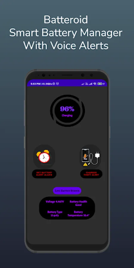 Batteroid Smart Battery Manager is the most expensive app on playstore. Help You To Avoid Phone From Overcharging and Discharging. Batteroid Battery Manager Will Set Alert Voice Alarms When Your Pone Battery Is Charged As Per the Percentage Selected by You Selected In App.This App Also Contains Charging Theft Feature Which Will Make Sure that no one touches your phone while charging.