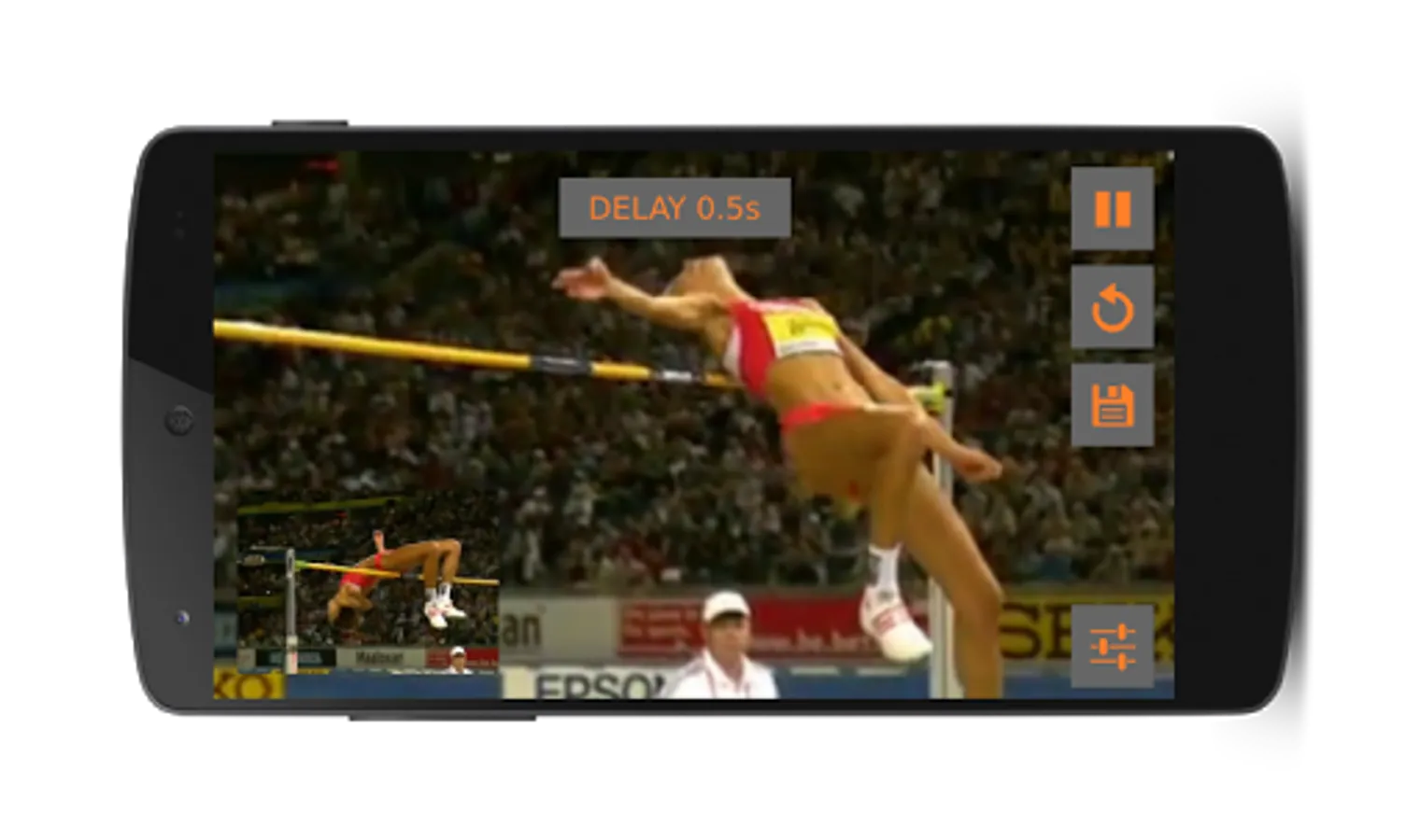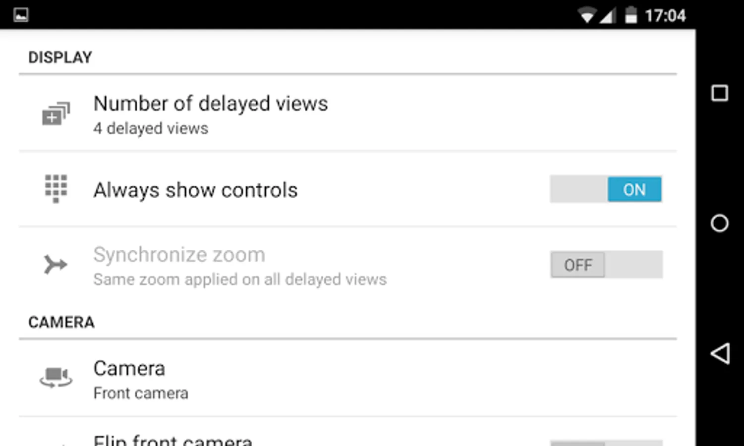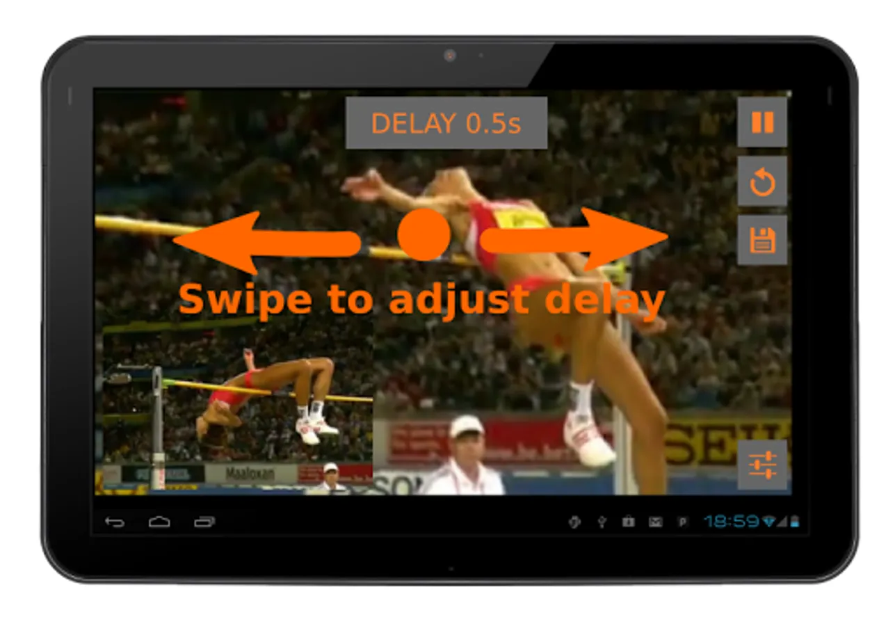 Supports front and back cameras. Use front camera for a delay mirror effect.