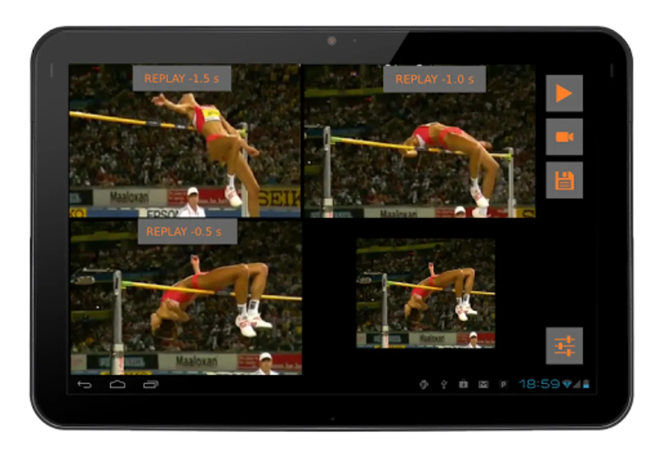 You can record your performance and watch it a few seconds later directly on your device without touching a button.