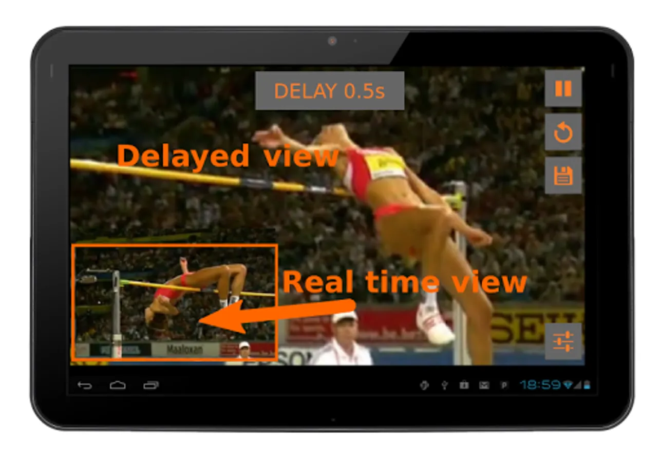 Video coach records videos and displays them continuously with a time delay for a quick and handsfree visual feedback.