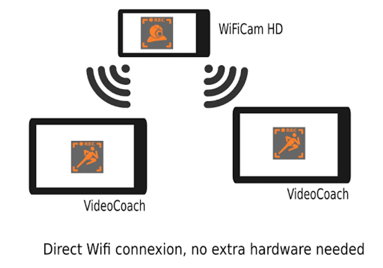 Connect the 2 devices using WiFi directly (no WiFi access point needed) and you get a external wireless HD camera for VideoCoach.