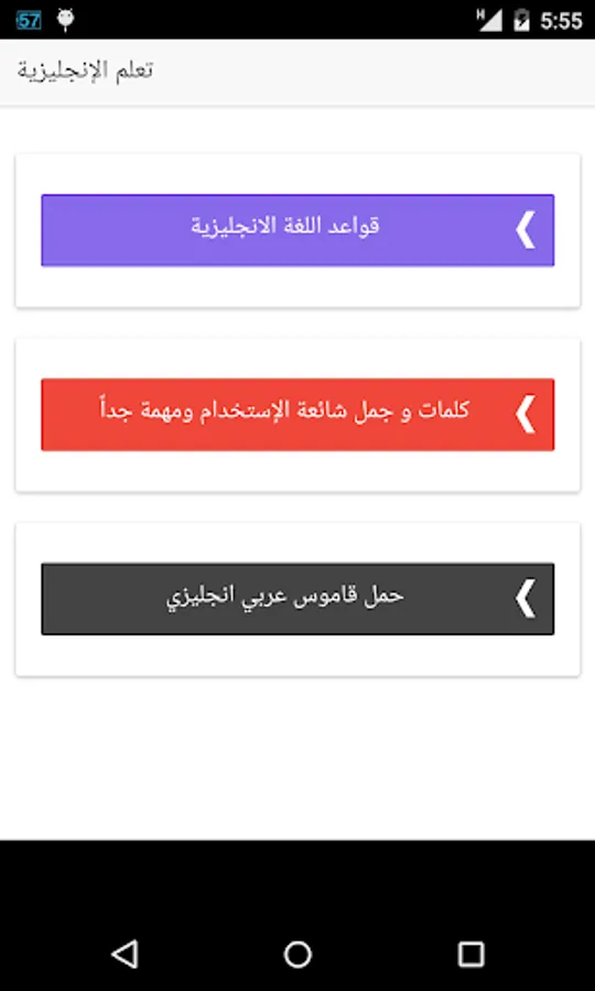 يهدف هذا التطبيق لمساعدتك في تعلم اللغة الإنجليزية التي يمكنك استخدامها في حياتك اليومية او في دراستك .حيث يركز التطبيق على قواعد اللغة الإنجليزية مع الأمثلة بالإضافة الى مجموعة كبيرة من العبارات والجمل الشائعة والمهمة التي تساعدك في بدأ الحوار مع الآخرين