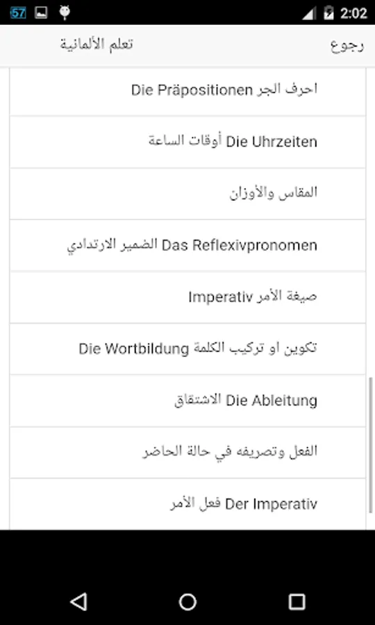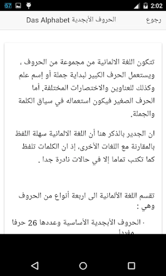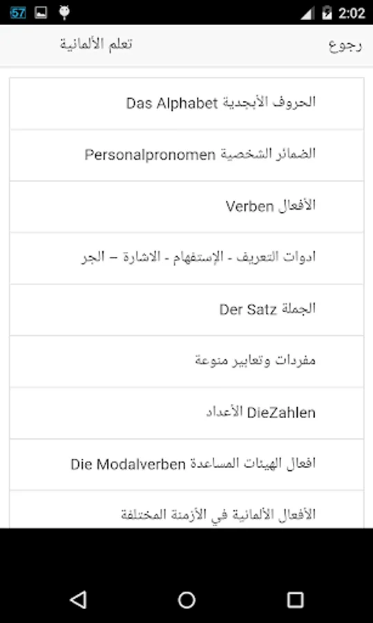إذا كنت تريد تعلم الألمانية وقواعدها فإن التطبيق يقدم لك اساسيات اللغة الألمانية التي تساعدك بتعلم الألمانية واتقانها بسرعة وبشكل مبسط .