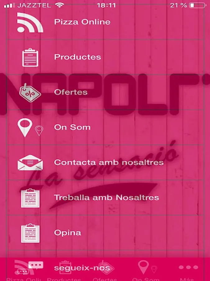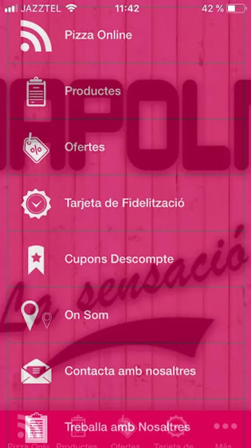 App of Pizza Napoli la Sensació. You will try our letter on to tria els teus plats preferits. Ara pots fer comandes via the nostra App, pots passar-la to recollir or rebre-la a casa teva. Also, you will receive notifications in temps real d'ofertes, promotions or decomptes, but in any case you will receive active notifications.