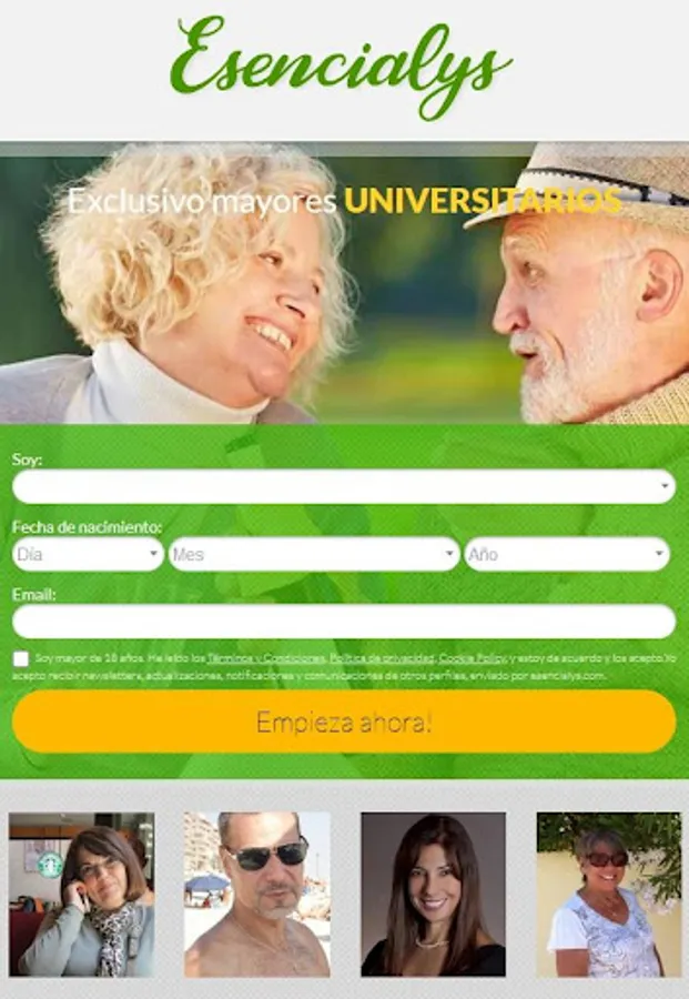 In Esencialys desdé this application, all the elderly with good cultural level who are alone gives confidence and hope to find someone with whom you can formalize a future stable couple, people of quality and pure essence, with the purpose of a sentimental bond of guarantees.