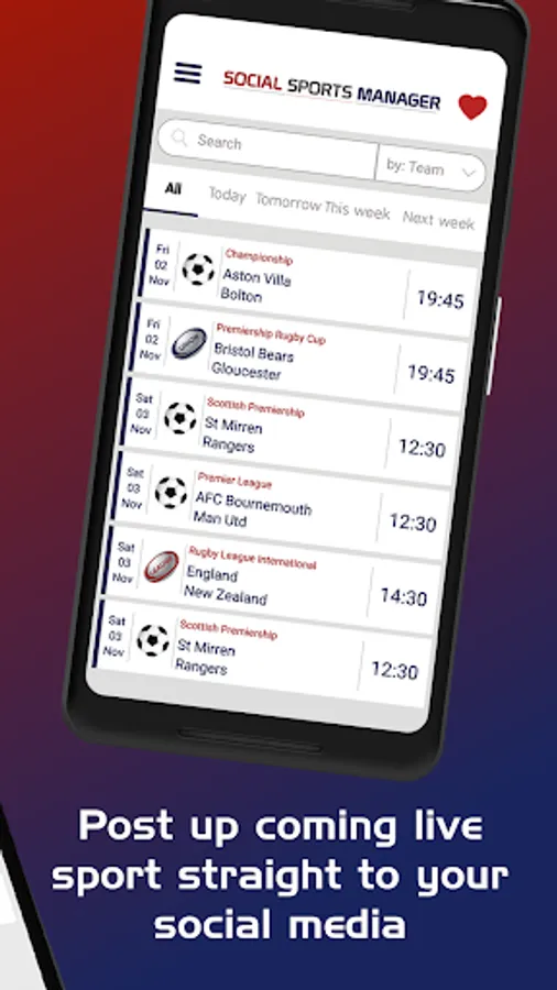 We all know it takes time to populate our social media feeds and also very time consuming. With Social Sports Manager your Social media timelines and feeds will be active on a new level plus they will be looking great and keeping your followers in the loop.