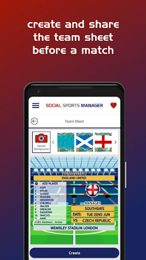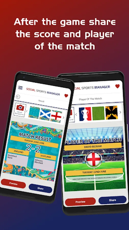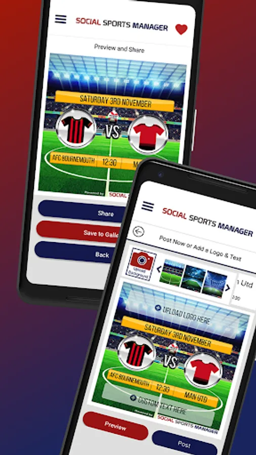 This newly updated feature allows teams to create social posts informing their followers of the result of their games. Simply add Home/Away team badges from your gallery or search the database to find the badges. Add the score, plus now you can even add the goal scorers.