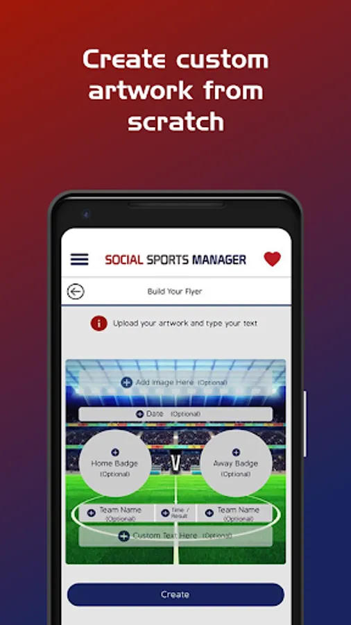 Here you can get adventurous and create an eye catching design from scratch. Simply choose a background or upload one of your own, then upload you team badges, add the team names, date, time and you are ready to go.