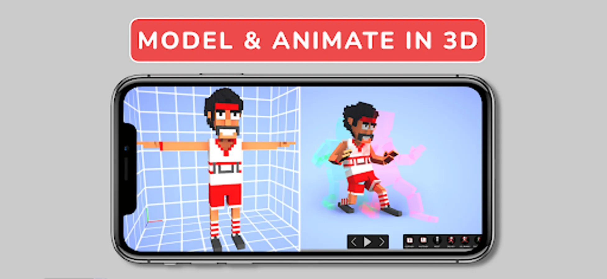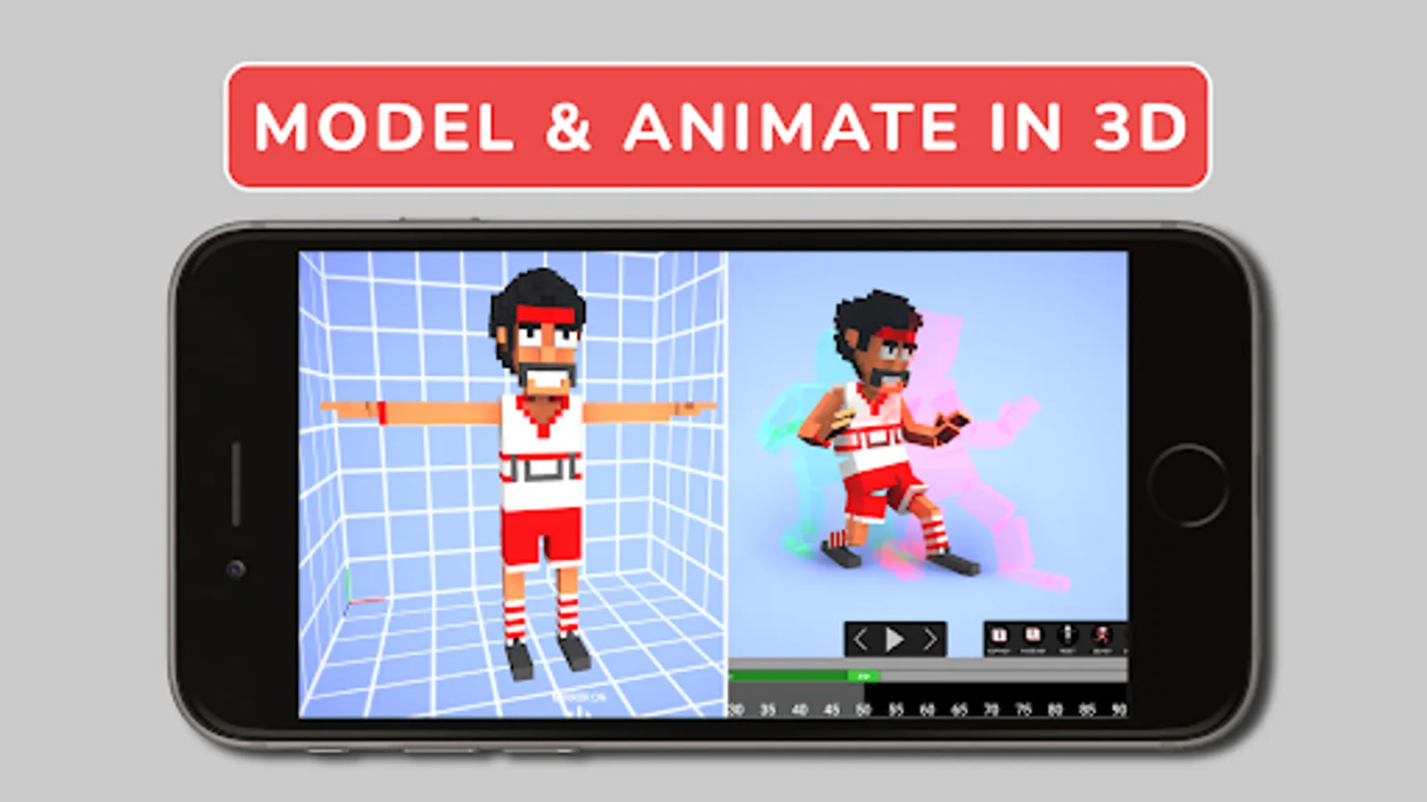The in-built Voxel modeler lets you modify the character and then seamlessly switch back and forth with the animation scene.