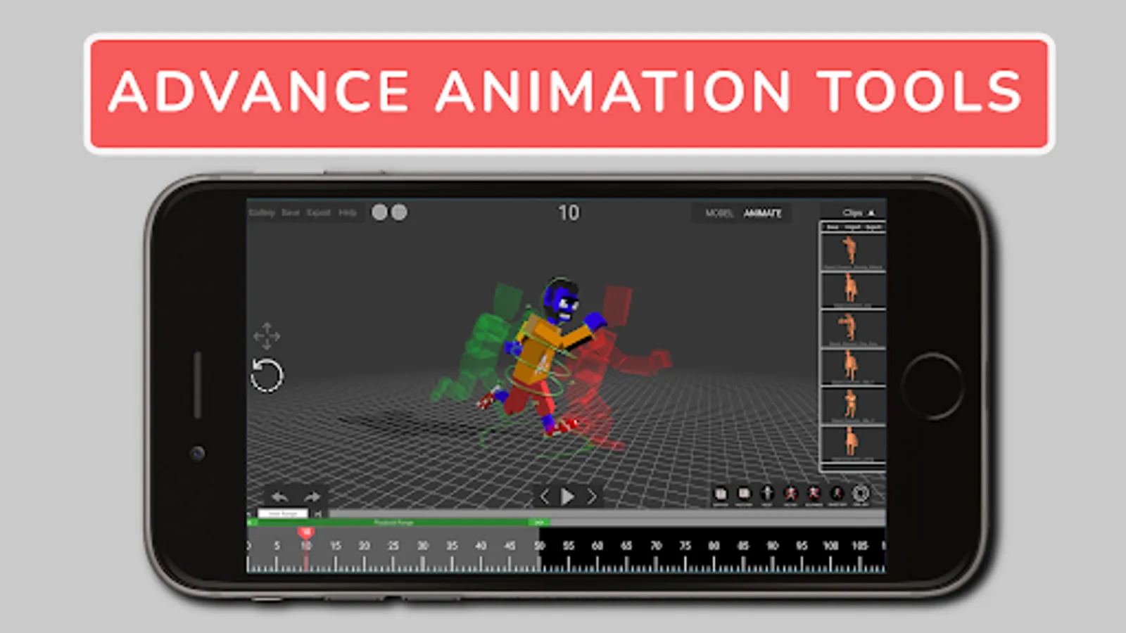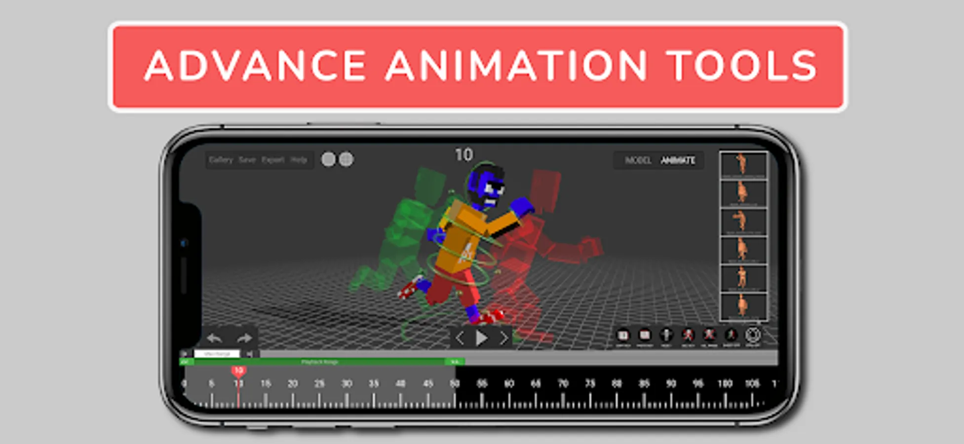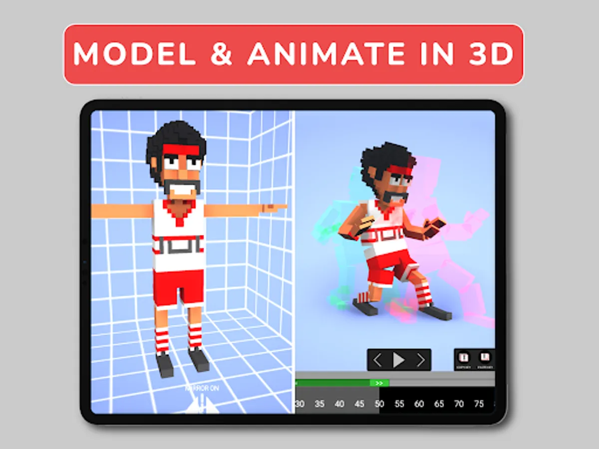 Easily model and animate a 3d character with keyframes using onion skin guides in order to pose your characters.