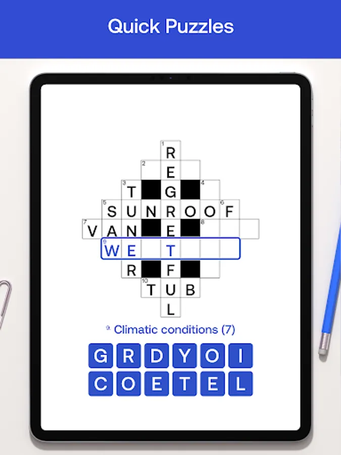 The ultimate challenge - cryptic crosswords use their own obscure rules to hide the answer in the clue, using anagrams, double meanings, and a host of other subtle tricks. If you get completely stumped on a clue, you can swap it out for an easier, non-cryptic alternative.