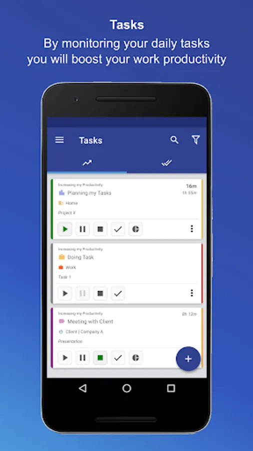 -Starting to play and pause your tasks in your workdays.