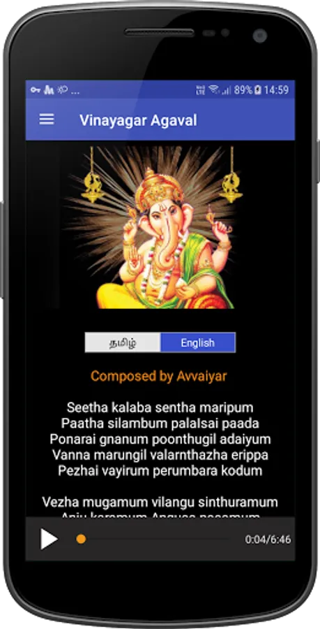 Vinayagar Agaval is a devotional poem for lord of Ganesha. This Tamil poem was written by Avaiyar in 10th century for Pilaiyar perumaan. You can sing this agaval during the vinayagar fasting time and in sadhurthi also. This Audio mp3 sang by Seergali Govindarajan.
