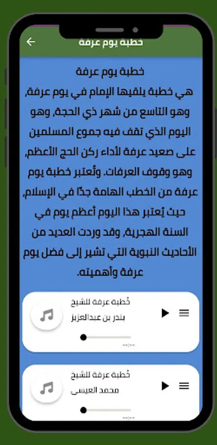 - Sermon on the Day of Arafah (Bandar bin Abdul Aziz - Muhammad Al-Issa - Al-Arifi - Al-Sudais - Al-Shaarawi - Al-Muaiqly)