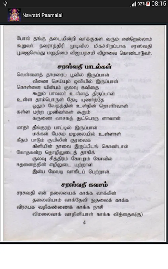 This App contains Navratri festival detail and Saraswati devotional songs such as Sakalakalavalli maalai, Anthathi, Kavasam. This Navratri Paamalai is suitable to Tamil Hindu Religious people.