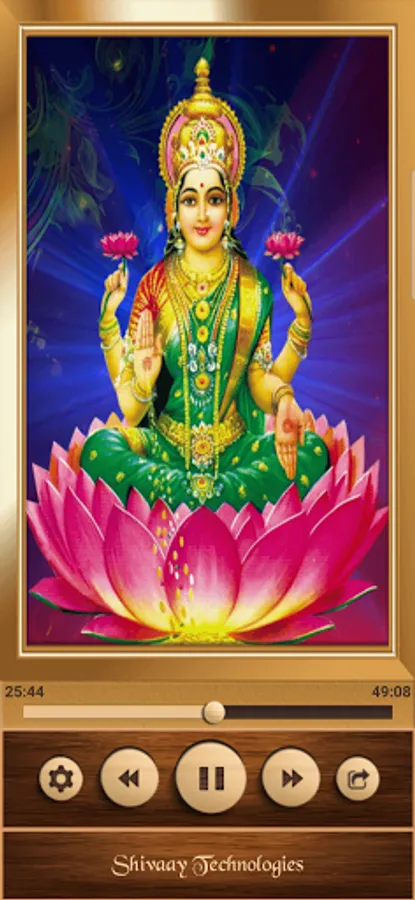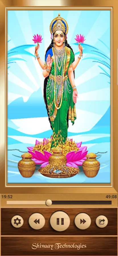 Lakshmi is Hindu goddess of wealth, fortune and prosperity. She is wife and active energy of God Vishnu, who is Supreme God in Vaishnavism. Her four hands represent the four goals of human life considered important to the Hindu way of life – dharma, kāma, artha, and moksha.