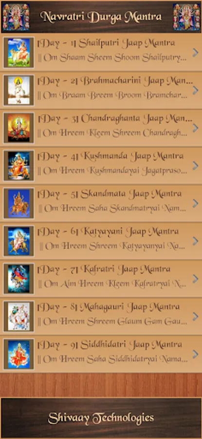 Feel blessed by listening to Navratri Durga Mantra by Shivaay Technologies which contains:
