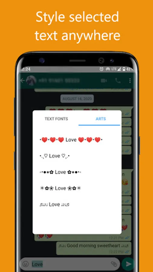 Install Love Fonts to create cool fancy texts to share with your friends and loved ones.